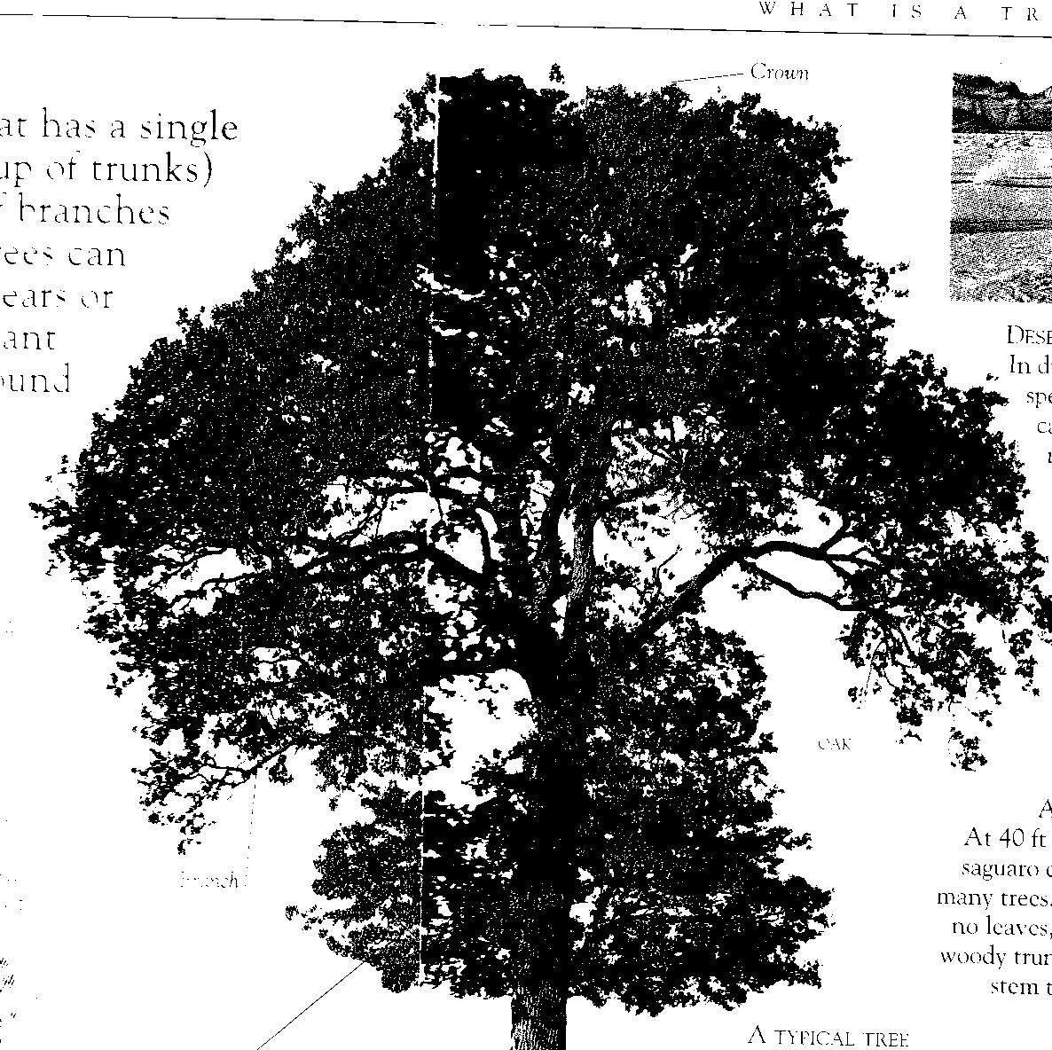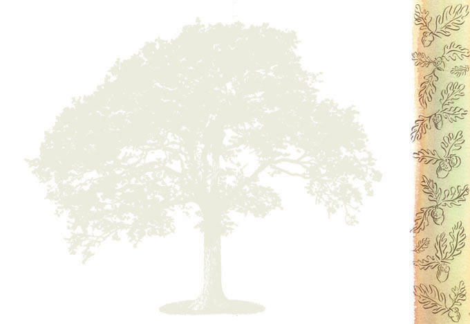 On the left is the photocopy image I started with for the oak tree. I wanted to create a silhouette version for a background, which I achieved by working with the scan in PhotoShop.