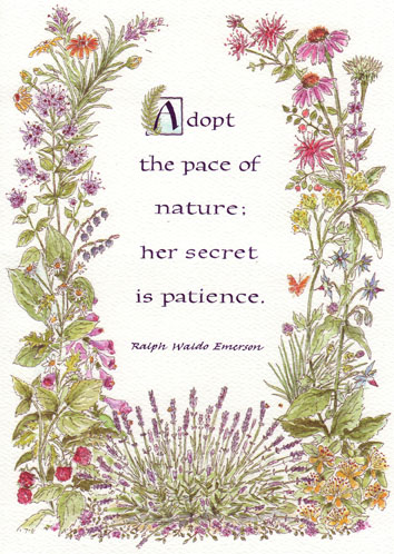 Herbal Get Well 5×7 Card, purple foil RW Emerson text on front. Inside: Rest, take care and take all the time you need to feel well again. $2.95, free shipping