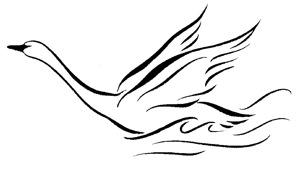 Considerations were: how much detail should be included in the wings, and in the depiction of the water being churned and splashed? Should the swan be made to look more graceful than it realistically does when accelerating in the water? In the end, a classic, poised swimming swan was chosen over the active version. Why? It was much easier to incorporate with calligraphy and type in the final logo. And, there was no ambiguity as to what bird it was. There's no mistaking a swimming swan.