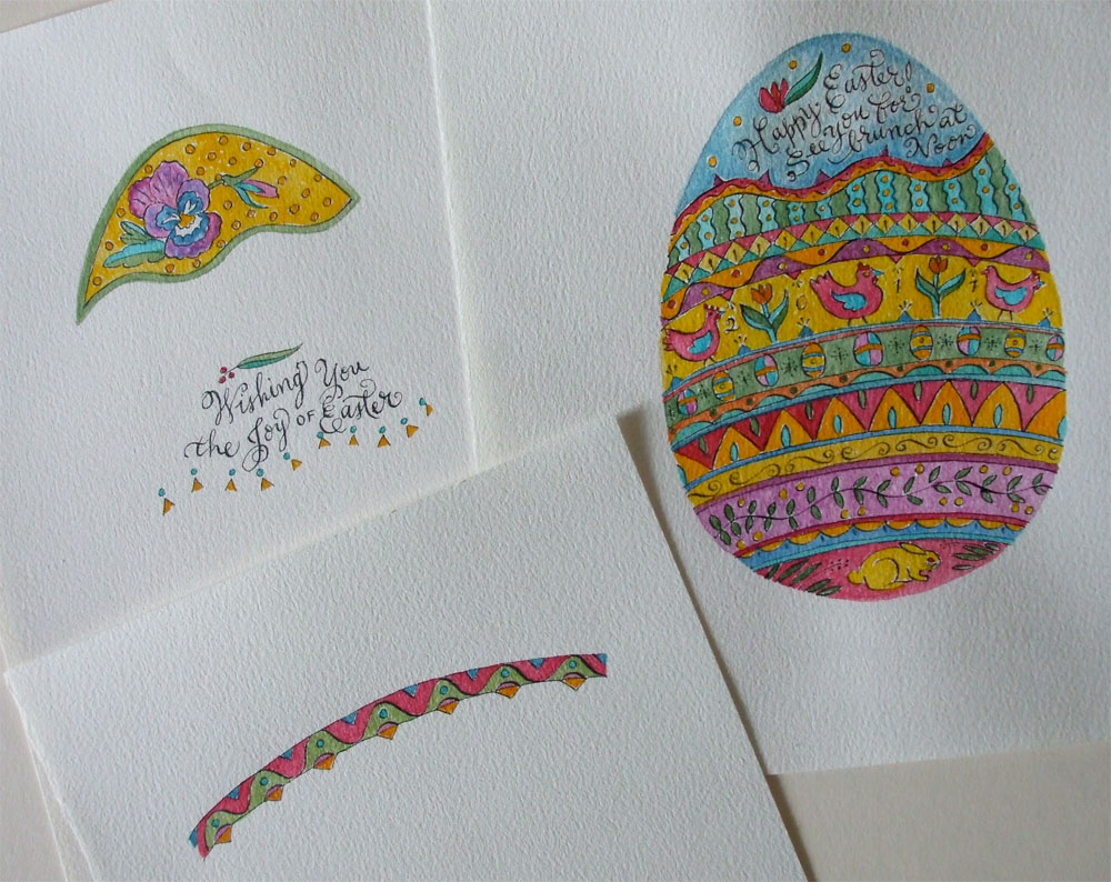 Designing for family celebrations and special events is my favorite kind of designing to do. Easter has always been a favorite holiday, and frequently the family gathers at our home here in Shoreline, WA. This year, I was inspired to design an invitation that doubles as a greeting card (sent to a few friends). Click on images to enlarge them.